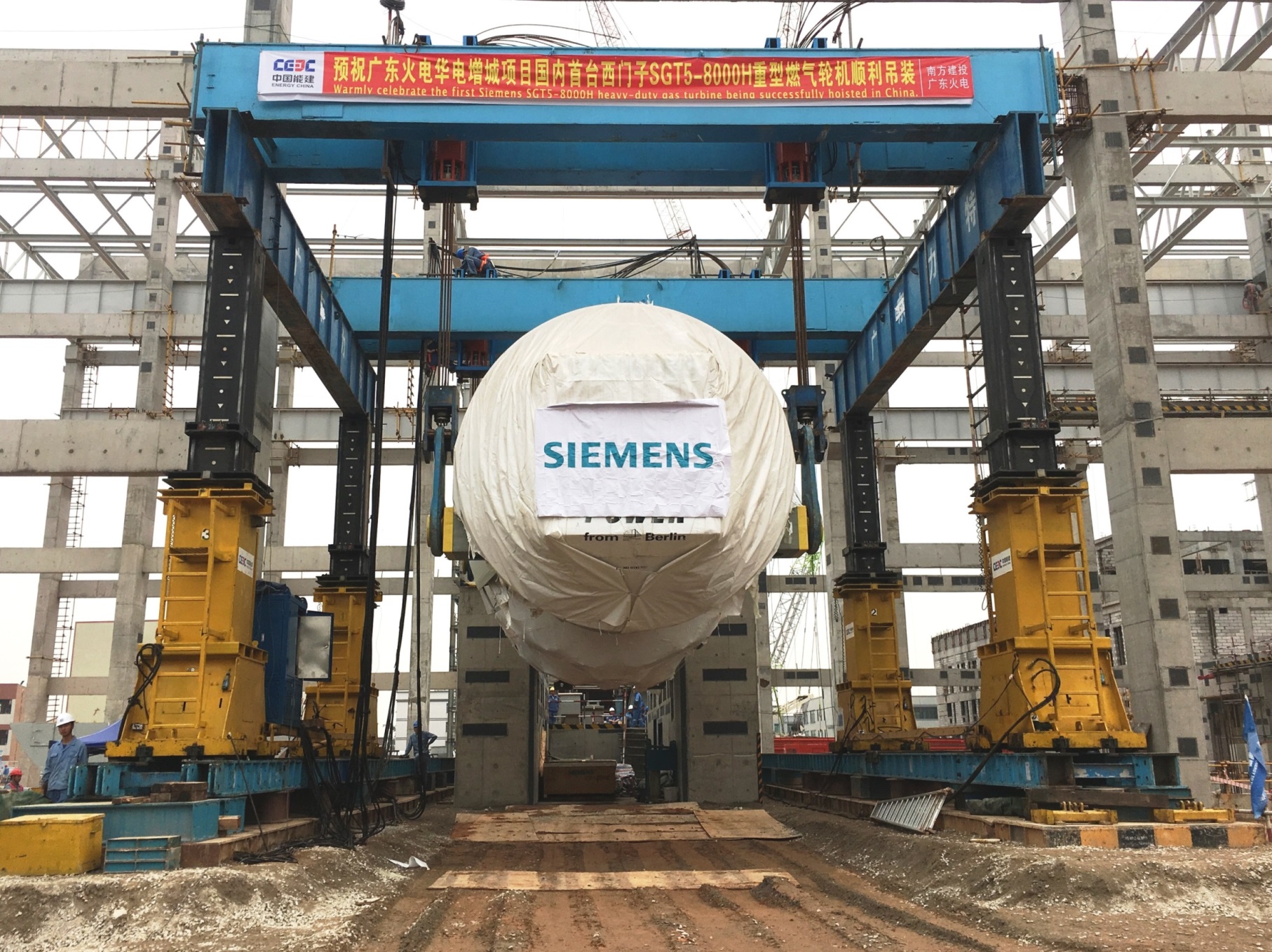 近日,西門子為中國最大燃氣——蒸汽聯合循環項目提供的1號SGT5-8000H重型燃氣輪機已順利吊裝就位,二號機組將于本月底抵達項目現場。作為該項目的關鍵設備,燃機的快速交付對確保整個項目的順利推進具有重要意義。一號機組預計于2019年年內投運。